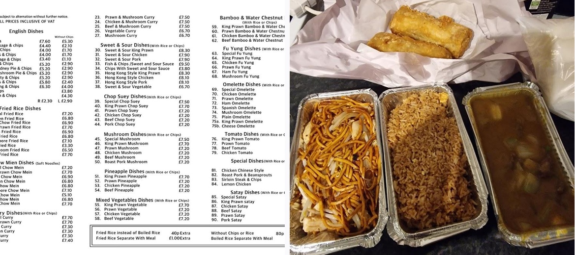 You can't go wrong with the chicken chow mein or crispy chilli shredded beef. Many locals also rave about the sausage and chips with curry sauce.